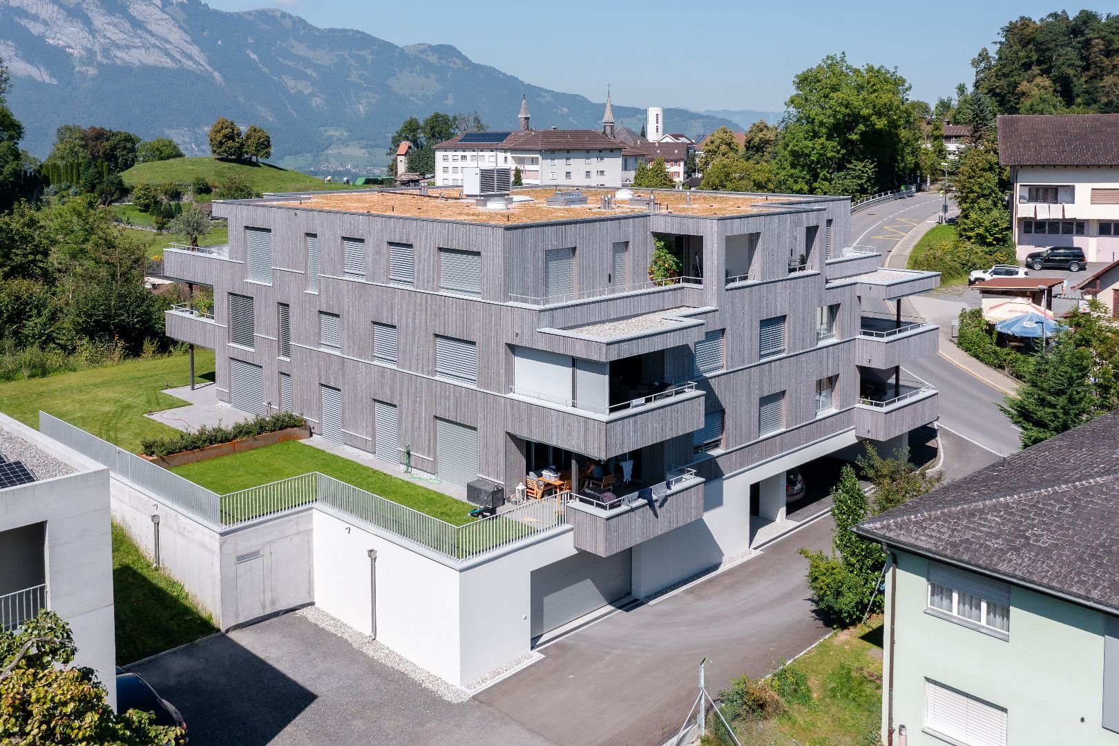 Mit dem Neubauprojekt Kuppa ist am Stotz in der Gemeinde Schellenberg ein markantes Mehrfamilienhaus mit acht Wohneinheiten entstanden. Die naturnahe, ruhige, sonnige Lage des Baugrundstücks besticht durch eine tolle Aussicht in drei verschiedene Länder und auf die Rheintaler Bergwelt. Auf einem Sockelgeschoss mit Eingang, Parkierung und Kellerräumlichkeiten wurden sechs 4.5-Zimmer Wohnungen und zwei 3.5-Zimmer Wohnungen mit sehr individuellem Ausbaustandard realisiert. Holzfassade, Luft-Wärmepumpe, PV-Anlage, Wasserenthärtungsanlage runden das gelungene Totalunternehmerprojekt ab.