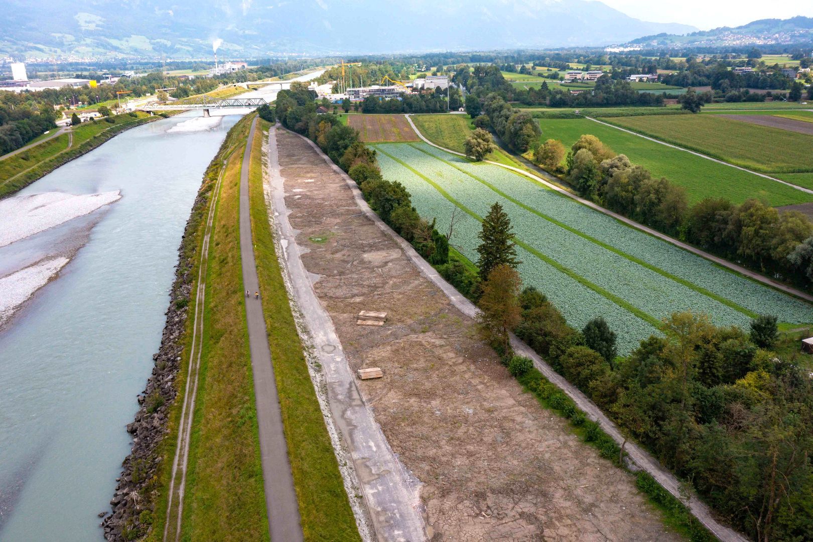 In Zusammenarbeit mit verschiedenen Fachexperten konnte eine alternative Ablagerungslösung mit sinnvollem Verwertungszweck des Rüfeschlamms in Form einer Rekultivierung (Bodenverbesserung) im Schaaner Landwirtschaftsgebiet gefunden werden. Die Ablagerung wurde dabei so ausgestaltet, dass gleichzeitig die erforderliche Rheindammsanierung auf diesem Abschnitt ebenfalls gelöst werden konnte.