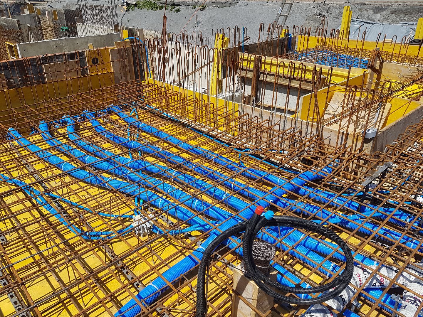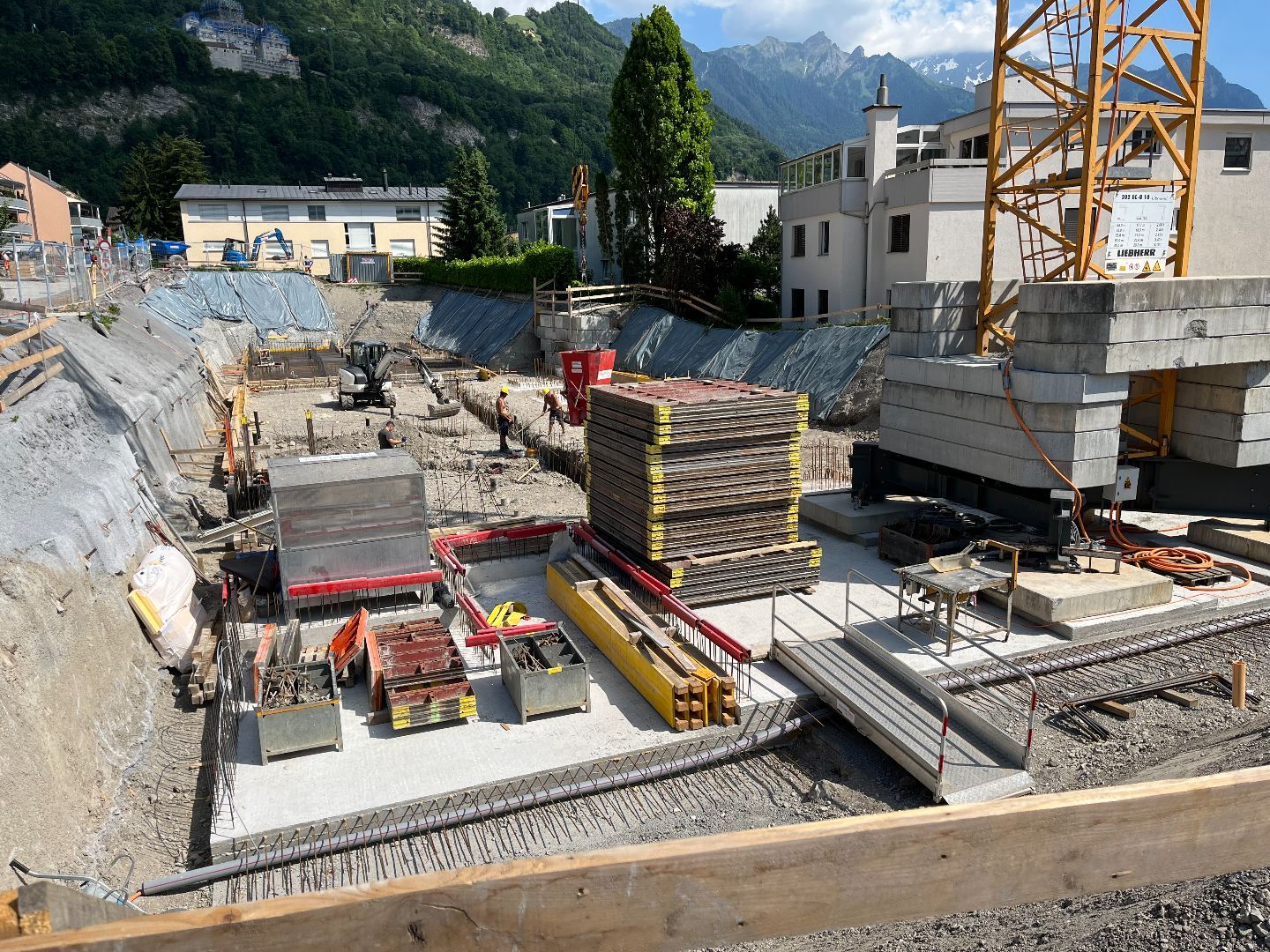 Aufgrund setzungsempfindlichen Bodenschichten mussten zwei Häuser auf Pfählen fundiert werden. Zur Anwendung kamen dabei Mikropfähle, die bis zu 20m in den Untergrund reichen.
